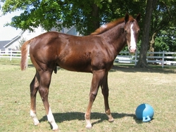 Posted on Monday, Jan 8, 2007 - 12:08 pm: Hi Lori,As for the ball in the pasture, I wouldn't hang it, Just throw it in the pasture with her and I am sure she will play with it. Get a nice big one with a handle on it for her to grab. I have a weanling and he plays with his ball all the time. Jumps over it, and carries it around and throws it up over his head. It is pretty amuzing to watch him. Just be careful that she can't get her foot caught in the handle of the ball. I have one hanging in his stall too, just high enough that he can bat it with his nose. He plays with it quite regularely as well.