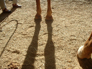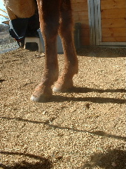 Posted on Tuesday, Dec 16, 2003 - 4:16 pm: Thank you Sharon for posting my pictures...I was trying to put them all in one post I have posted two pictures of his sole and also a conformation picture just in case it might help. Sara, I was soaking him in epsom salts to try to toughen them, not just soaking them in water. But he wouldn't stand for it. I am putting Crossopol on the soles twice a day to toughen them. I'm also putting Keratex hoof hardener on the horn. Janet, The Keratex *I think* is only supposed to go on the horn, they have another product for the sole, but I didn't want to wait for it to be shipped. So I bought the Crossopol (per my vet)for the sole. Alden, thank you for your input! He gets shod every five weeks, his feet grow very fast. I understand your thoughts about farriers (;) However, mine is also an endurance rider and really loves horses and his job. He is right there with me that he should at least be able to *try* to go barefoot. If nothing else to give his feet a breather. That being said, I do not believe he gave my horse a barefoot trim, you'll be better able to judge by my new pics. Please give me your input on his sole, I would greatly appreciate it! Thanks Susan, your input is always valuable to me! Thank you Christos, He will NOT walk briskly on gravel, but he will walk (;) He's not too keen about the decomposed granite floor in the center aisle either...tentative. Sand and mud...NO problem (;) He even took it upon himself today to throw in a canter and a buck while I was handwalking him, so I put him on a lunge line. I did not ask him to do anything. He did it all by himself: Trot, Canter, GALLOP...screeching around the corners. Last, are you sure that there is pain and he does not simply hate the new feeling? I have thought about that Christos, but I think it was more like "this is a weird feeling!" Just based on his actions today. He either feels VERY GOOD or he just mad that his feet hurt.(;) Thank you Dennis...you could be right! Please take a look at the new pics! |