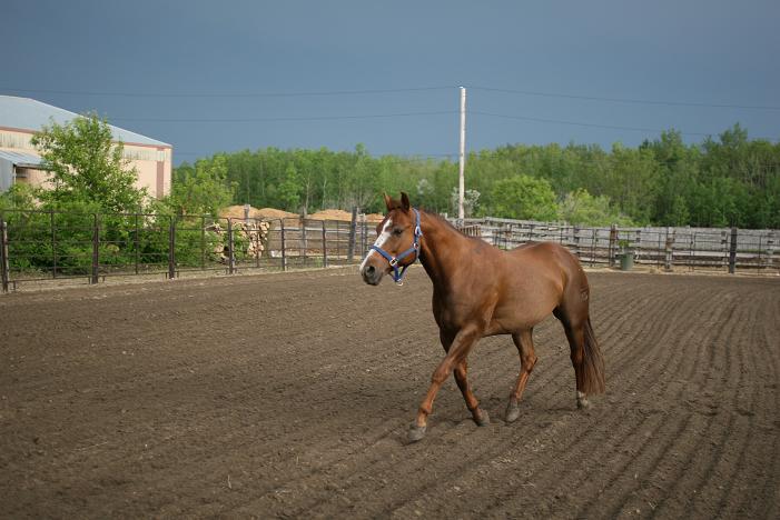 Posted on Thursday, Jan 31, 2008 - 10:53 pm: Updates: Rockin is now officially at 960 lbs on the weight tape, 2'' of hair included! It's been in the -40-50's here with the wind chill, so the horses have been in on occasion, and have been getting a bit more hay to make up for boredom/cold. However, the new (big, handsome & very fit) gelding is going out with her to get adjusted and she is SMITTEN. Let's just say that she has (ahem) found a new way of burning extra calories? Incidentally, he is the son of the stallion that she loves to watch all day... I've raised a mare with a one-track mind.Anyways, I'm guessing that without the hair, she would probably be at 950 or just slightly below, and I can actually feel ribs! She still has some fat deposits on her tummy, but I don't really want her to lose much more (she was around 970 in the above pictures last summer). I would score her at a 5.5 on the Heinneke scale right now, but I'll have to wait until spring to truly assess without all of the hair; she could actually be around a 5. I think that instead of increasing her hay, I will treat her to 0.5 lb alfalfa cubes (well soaked) mixed into her beet pulp (which I boil & drain to remove calories from molasses before adding her vitamins) to increase protein in her diet a bit. She only gets 12-16 lbs grass hay (14 lbs on most days), warm water, salt/minerals free choice, 0.5 cups beet pulp (1/8 lb) and a multivitamin/mineral supplement at the moment. Anyways, no pics of her thin & hairy yet (has been too cold for the camera, believe it or not) but I will get some ASAP. |