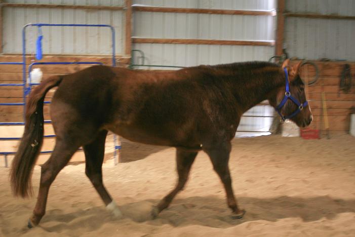 Posted on Sunday, Feb 3, 2008 - 9:29 am: Erin, Is the picture of the horse walking in the corral a picture of Rockin?Two thoughts come to mind about her lameness; I have seen some short strided horses that 'seem' to be stiff in their movement but it is just that they are really short striding. I can see in the pictures that she takes fairly short steps. (not a critism observation only) Also, I am no expert but it appears the hoof angle needs some improvement, that would help the stride which in turn would reduce stiffness. |
