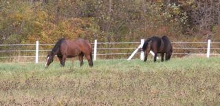 Posted on Wednesday, Oct 22, 2008 - 1:14 pm: Angie,The pasture is only 2 acres, and they may have it eaten down pretty soon, but winter is coming so it'll be dying off too... They are soo happy in this pasture, Rosie the TB just runs and runs around it. Freedom!! Can rich grass and grass hay make them "high" like too much carbs in sweet feed? Anyway, they have been demoted to stemmy hay and pasture. The grass hay I have is REALLY nice, it smells sooo good, like horse candy and it's the kind of hay I would definitely sleep in. When it was put up the whole barn was this fragrant, herbal, grass smell. No wonder they are nuts. I'm going to get the hay tested... Adria |