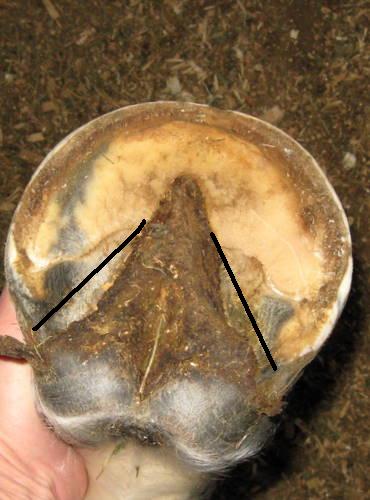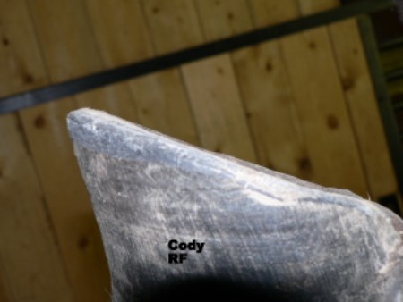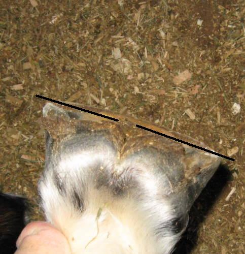 Posted on Friday, Dec 18, 2009 - 6:36 pm: Here's his hoof with him standing a little more square, I couldn't get on the ground with my knee so hope this give you a good enough idea