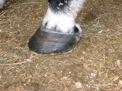 Posted on Tuesday, Dec 29, 2009 - 11:00 pm: Just checking... Since I was able to kneel and get a little closer shot of Hanks hoof, (I have been cropping them out since my knee was injured..it is all better now!, do you still think there is a flare in the toe??? The many colors of his hoof makes things distorted and I'm not so sure I see it in this pic. This pic is NOT cropped..wonder if cropping distorts things??? His hoof always looks better in the ones that aren't cropped.Thanks
