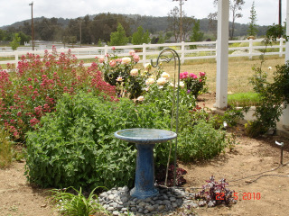 Posted on Saturday, Aug 7, 2010 - 7:03 pm: Hi All,I created a bird bath fountain with a muck bucket, a BBQ grill, a cement block, a shepard's crook, mexican beach pebbles, a small pump and of course a birdbath. It works great for attracting birds and keeping away mosquitoes but I still have algae. The tubing gets clogged, and the bath needs to be cleaned and every once in a while the whole thing needs to be taken apart and cleaned. Cynthia