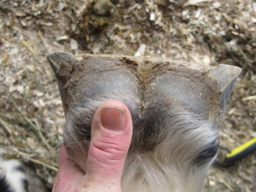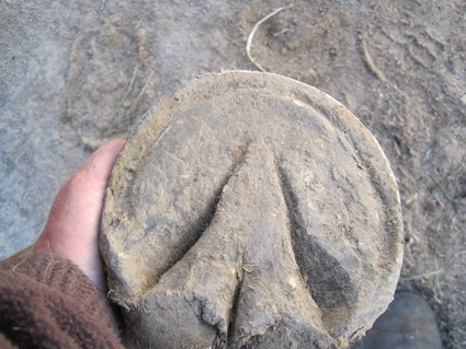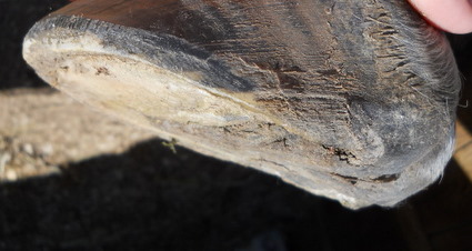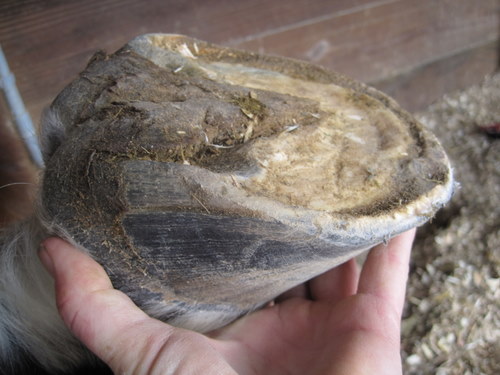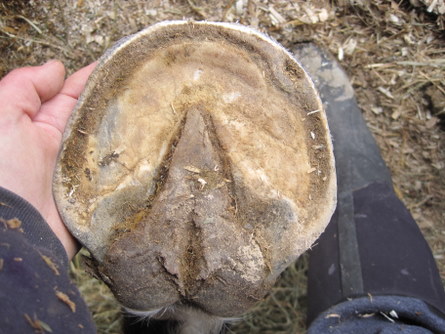 Posted on Sunday, Jan 16, 2011 - 2:53 pm: Here are some pics of Hank maintaining himself this winter, I have not touched his hoof since the farrier was here Dec. 6 so over 6 weeks. He could definitely use a touch up, but for Hank and a constantly wet hoof, not bad for mister platter hoof He does have his winter toe callous, the hole at 2 o clock is where the vet dug out his abscess month's ago. wonder why that isn't filled in yet? He is sound on the hard ground again. I ran the riders rasp around so you could he where his outside hoof wall is and rolled his toe a bit. I need to get after the bars and the flares. Over all I think he is doing a good job. I think I will have the farrier this week, we are suppose to get snow mon. He is doing an ok job now, and I would much rather he do it then me at least in this weather OH and the dreaded blob (I hated that thing!) remains GONE!