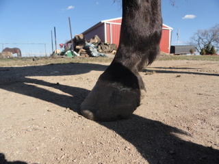 Posted on Thursday, Apr 7, 2011 - 12:16 pm: I hope you can get some sole views. He looks like he needs a bit of work and then maintenance more often than every 8 weeks to maintain. Both fronts need balancing, too high on outside. I am betting his heels need lowering.Refresh our memory please: What did Levi suffer from? Are you bringing him back from founder? |