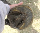 Posted on Wednesday, Apr 6, 2011 - 7:21 am: Pictures, pictures, pictures PLEASE.Pressure at the 1 to 2 o'clock areas of the hoof wall could be causing the crack. What is the depth of the collaterol grooves, near the tip of the frog and at the back? If there is not much depth at the front, he is thin soled and will be tender after trims possibly. If the wall isn't beveled right, and there are flares left, he will be tender. In other works, don't assume he's tender due to a sole issue. Of course, what do I know? ;-). And one of my horses has had a superficial crack for years too. |