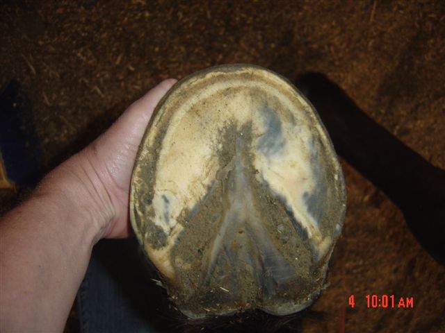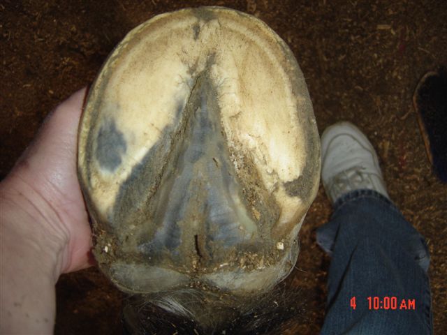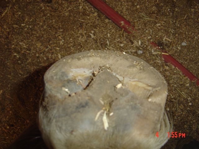 Posted on Monday, Jun 12, 2006 - 9:34 am: Cristos, Could you give your thoughts on these hoofs. I know he slightly flares and his walls are very thin anything else.Thanks Katrina |