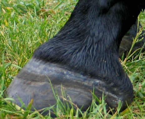 Posted on Tuesday, Jun 13, 2006 - 8:00 am: Susan, the wall will appear bent and cracked under the hoof or out to the side. Though the tubules on your hoof are deformed at the heels (notice how the rings on the hoof wall wave if you look closely you will see they follow the nonparallel contour of the tubules making up the wall) I don't see any crushed areas but there are areas I cannot see well.DrO |
