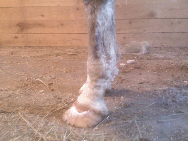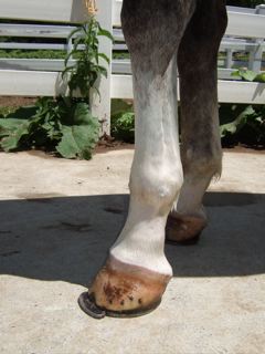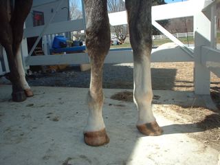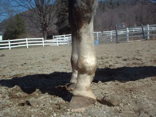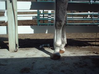Posted on Friday, Apr 20, 2007 - 3:33 pm: I will try for some better pictures. I called my vet and they are going to come look at him on monday. They said to give him bute and take him off all but a handful of grain/day. Also that he should stay in his stall or could go out if he was going to be calm. I tried him out and he was pretty calm, but after just a little moving around he was standing over on his right foot.