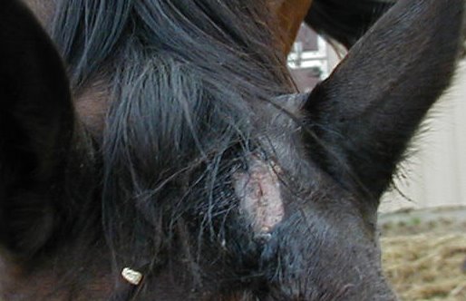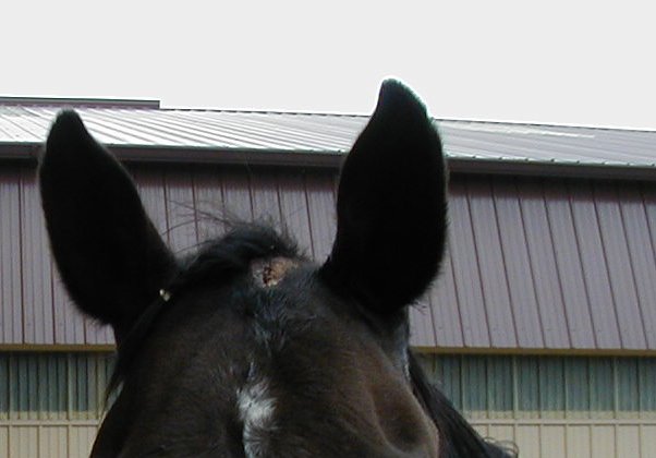 Posted on Monday, May 28, 2007 - 3:18 pm: Hi, Dr O,My 16 YO TB managed to gouge himself on something on the top of this head last Friday. He had come in from the pasture with it. There was dried blood down his face, so it looks to have been there a good portion of the day. I had the vet out to sedate him so we could get a good look at it. He mainly scraped the skin except for a perfect slice through the top. I was able to wash with warm water that night, and Neposprin ointment on it. On Saturday, I wasn't as successful - got some on, but he would not let me near it. I put a fly mask on so it would protect from the sun and flies. He freaked out with that on (I thought he might) and kept trying to rub it off. I went back a few hours later and it had been touching the wound, unfortunately. (I am not putting that back on.) He won't let me halter him and trying to get the ointment on it is next to impossible without him being sedated. His attitude is fine - he really wants to go out in the pasture with his buddies, but have been keeping him up until it heals a little better. I tried to get a picture of how it looks, but he thinks anything near his head is going to hurt. These are best that turned out. 1 - How bad does it look? 2 - Should I give up on trying to put ointment on? 3 - If I need to apply something, any suggestions on how to get him to cooperate? He has had head issues in the past, so this just brings that all back. I think he'd need to be sedated if I need to get at it. I think he will be a more cooperative as time goes on (hurts less), but I don't want to make things worse by waiting. I remember something you said - 80-10-10 rule (or something like this?) 80% of the time, something will get better no matter what you do 10% of the time, something will get better because of what you do 10% of the time, something will get worse no matter what you do... I hope his problem is in the 80% area? Thank you |