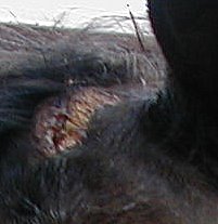 Posted on Tuesday, May 29, 2007 - 6:32 am: Hello Nadia,Nice gash. 1) Though a full skin thickness wound, with no complications from deeper injuries wounds or infection and proper treatment the skin in such injuries will heal fine with a barely noticeable scar. But we cannot assess these deeper structures so your best assessment was made by the veterinarian who could examine the wound: what did (s)he say? 2) This wound should receive daily cleaning and treatment for the best outcome. 3) Daily sedation is one fix but I would also suggest you apply the principles in Training & Conditioning Horses » Behavior and Training » Modifying a Horses Behavior: Conditioned Responses. Horses can be easily trained to withstand mildly aversive procedures using these techniques. You misapply the 80/10/10 rule by assuming we always know which wounds are going to heal without complications: it is the nature of medicine that we are often not pre-aware of which wounds are going to have complications. So the rule to apply here is the "do the best you can rule". DrO |