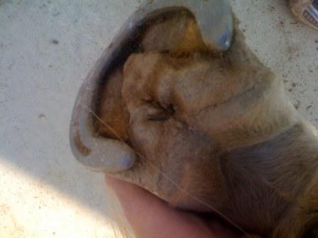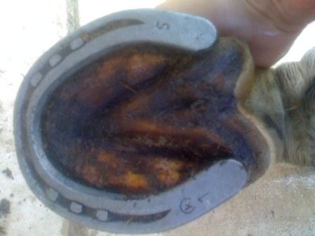 Posted on Saturday, May 9, 2009 - 9:30 am: The vet used hoof testers and he did respond to them but the vet didn't make a big deal about it. So I assumed it was a low level response. I'll try to take some better pics.I'll try to get some better pics. People were already looking at me funny for taking pics of my horses hooves with my iphone... wait till I start laying on the ground