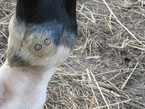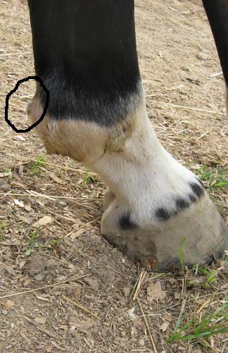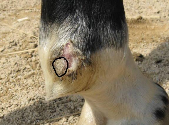 Posted on Wednesday, Sep 30, 2009 - 4:16 pm: Dr.O. here are some pictures, I am so thrilled this thing is finally starting to look normal 1st pic I circled the spot that is being stubborn, and actually seems to have some puss underneath the black stuff. I think this Black necrotic skin and the white leathery skin was a good part of the lump...lately The second pic I circled the black stuff from the side, you can see how far it was sticking out and a good part of it has fallen off with the dermavet Third pic is his fetlock ALMOST normal size