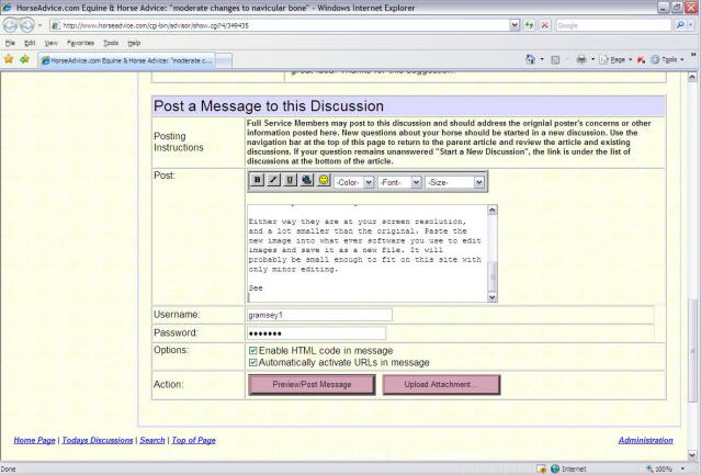 Posted on Sunday, Sep 20, 2009 - 8:54 am: I used the method to post these images.https://www.horseadvice.com/horse/messages/4/327110.html |