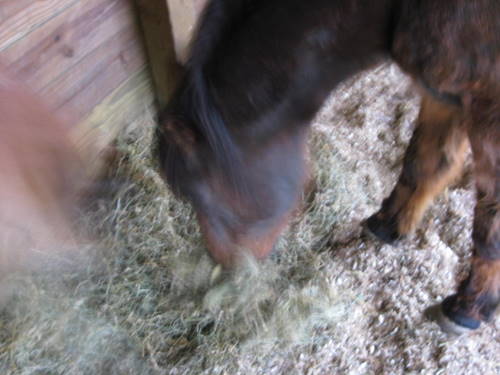 Posted on Tuesday, May 4, 2010 - 10:19 am: Diane, do you use small mesh hay nets? If you don't you might want to consider them. Hay lasts longer, horses don't "fast" and then get an insulin surge in am. I was skeptical, but now I see the value.If you are already using them, ignore me! nancy |