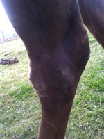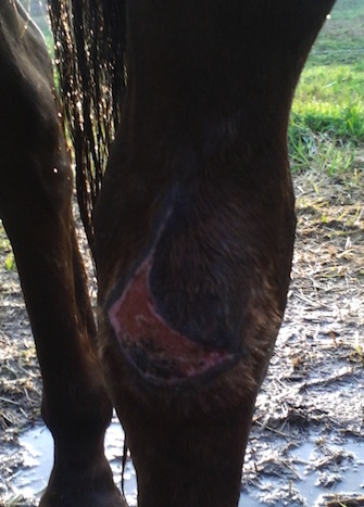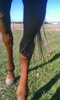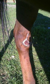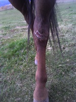 Posted on Friday, Sep 2, 2011 - 12:00 pm: Hi Lilo, I have seen horrible wounds, but this was my first one like this on my own horse! Needless to say I freaked. Thank goodness she was never lame, at least not until my bandaging slipped and she got the cut on the back of the hock... I felt horrible. But that was only for a couple of days. I use cotton, but somehow I messed up that day and I didn't see it until the next afternoon. All I can say is, if you end up with one... don't give up!