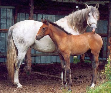 Posted on Friday, Mar 16, 2007 - 12:56 pm: I'm confused, is the mare pregnant or are you asking if the bay filly in the picture is going to turn grey? Which incidentally I would very much doubt that a bay filly turn grey.She is not a Lipizzaner is she?! |