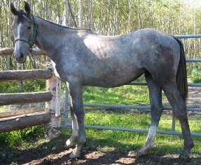 Posted on Monday, Sep 17, 2007 - 12:12 am: Wow . . . Her pasterns are really long, aren't they? And from this picture, the hock does look really straight, but I don't know if the point of hock is covered by the tail. Not much curve on the inside, though, is there? At least she's not standing too far under. How about some more photos from both sides? |