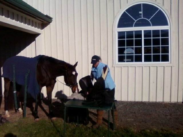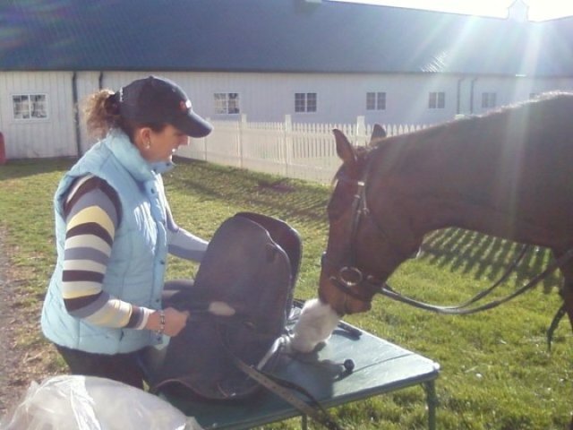 Posted on Wednesday, Feb 9, 2011 - 4:19 pm: I am stating this discussion as a follow up to behavioral problems with our OTTB. We have had him since he was taken off the track lame in October 2007. Onyx (Cat's Halo) got a few months off, starting into training for Hunter Showing in early spring 2008. The trainer and our daughter experienced sessions of great promise followed by bucking, retreat and restart. The trainer gave up on him after he became violent from the ground.We moved and lost most of 2009 to illness and injury (us not the horse). But, we worked a lot on ground manners. At this point the horse is a saint from the ground. Seriously, he doesn't need stall doors. Point him into a stall and in he goes. He will not exit unless asked. He does not need cross ties. Though, he stands quietly in cross ties if asked. Nobody would believe that this horse broke by daughter's toe, kicked her elbow off, or pinned the barn manager against a paddock fence. He doesn't seem capable of a violent response to anything or anyone. Today, the barn manager permits were 2 year old to play with him in the barn. He is completely trust worthy. Under saddle, it is another story. Last year we realized, low and quiet was not working for this horse, who can easily jump 4' oxers with 6' spreads. One rider said, He doesn't even get interested until the fences are over 3' 6". Yet, he would still become resistant (read quick little buck that lauches even a good rider several feet into the air) to schooling and training. It seemed to be back pain. We tried expensive saddles, message, chiro. We were introduced to Dressage as a way to develop a strong back. J.J. Tate works with him and our trainer. We ran into a wall, resistance to canter and collection. I read all the articles on back pain and finally decided to go ahead with one last Veterinary check, and pay for back X-rays if needed. We went to Dr. Brendan Furlong's in NJ. Initally, he wasn't sure X-rays were needed. He saw nothing to indicate a back problem. Onxy had been in stall rest for two weeks and we wanted to be sure. So, we ordered the X-rays. Dr. Furlong said, the X-rays indicate nothing in the bones. But, he was taught how to run like a race horse. You are trying to teach him a new way to carry himself, how to carry weight. He is going to get sore. Help him through it with Naproxen which works better for muscle pain than Previcox. If he needs something stronger try Robaxin. More to follow. |