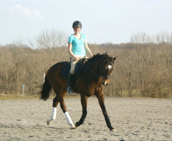 Posted on Saturday, Mar 19, 2011 - 7:22 am: Walking the hills in the pastures has helped a lot. He is better balanced and, as you can see, is in pretty good shape. He is still developing a topline. And that little buck wasn't an effort to get the rider off, more frustration with working in a collected canter.I didn't include photos of them working at he walk, but his walk is different now too. Much bigger but relaxed. Not resistant or hesitant. Our trainer is pleased with the progress so far. |