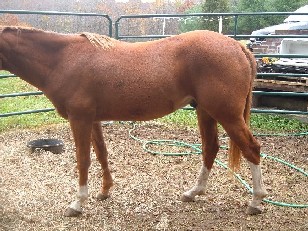 Posted on Tuesday, Oct 24, 2006 - 6:58 pm: Well, he's not standing square, but from what I can tell, he has a really nicely muscled rump, nice curve to the his crest (not ewe-necked), a good length to his back (looks like he might take a wide-tree saddle, though), long pasterns (love those socks), delicate looking lower legs and small feet. Can't tell if he stands wide in the front, whether or not he toes in or out, whether he is narrow or wide chested, or if he may be cow-hocked without seeing him from the front and back.Are you thinking of getting a QH? |